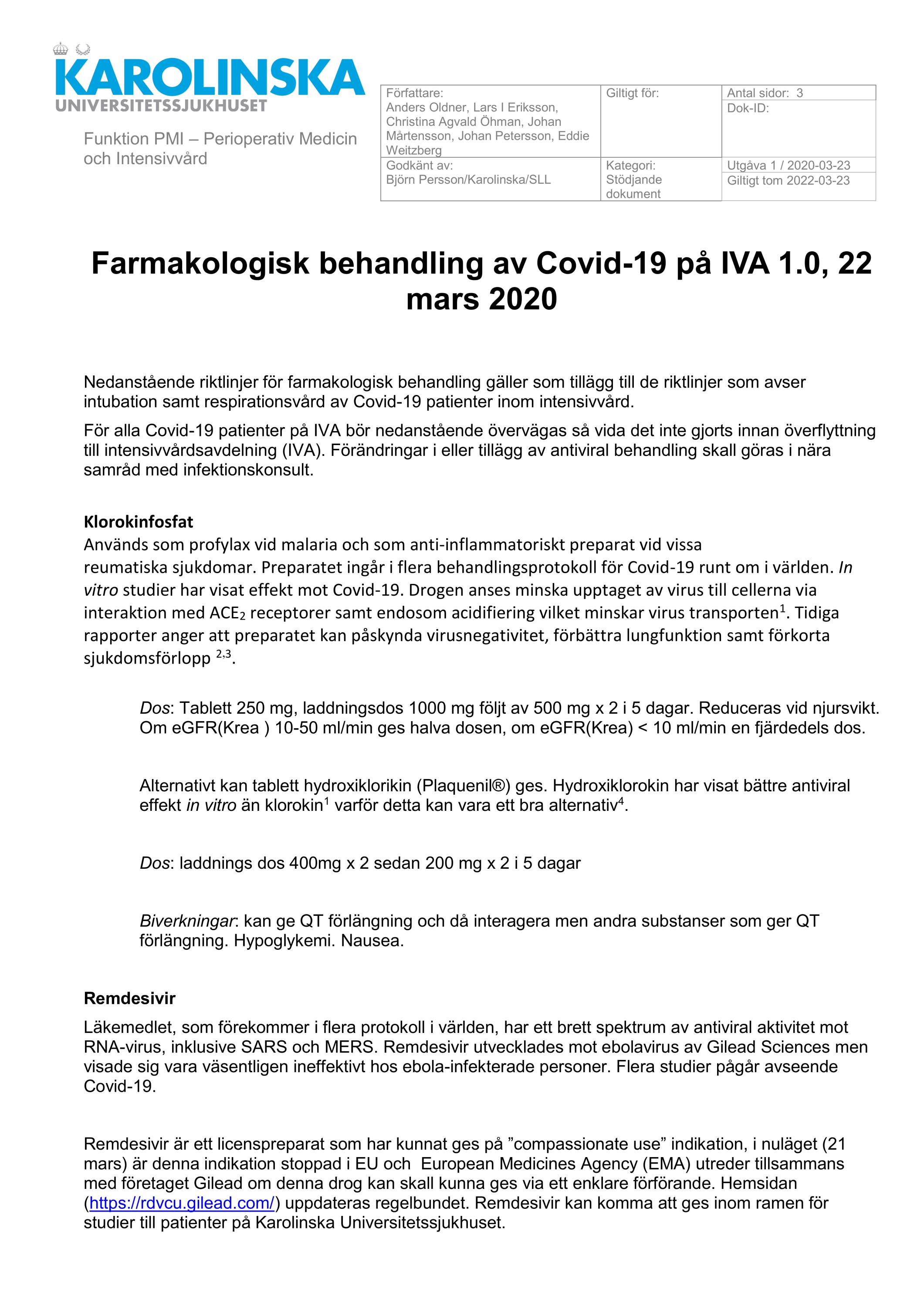 Dessa riktlinjer gäller vid Karolinska Universitetssjukhuset. Riktlinjerna får såklart användas på andra sjukhus – se dock till att förankra och eventuellt anpassa riktlinjerna för respektive verksamhet.
