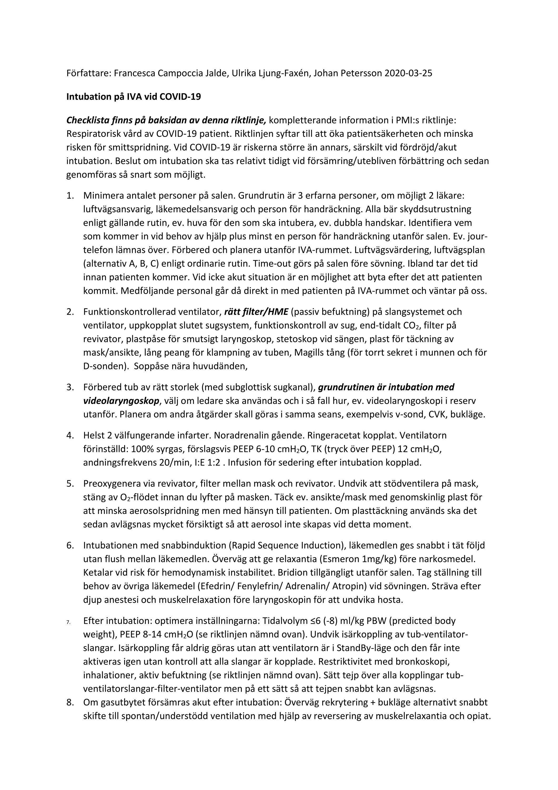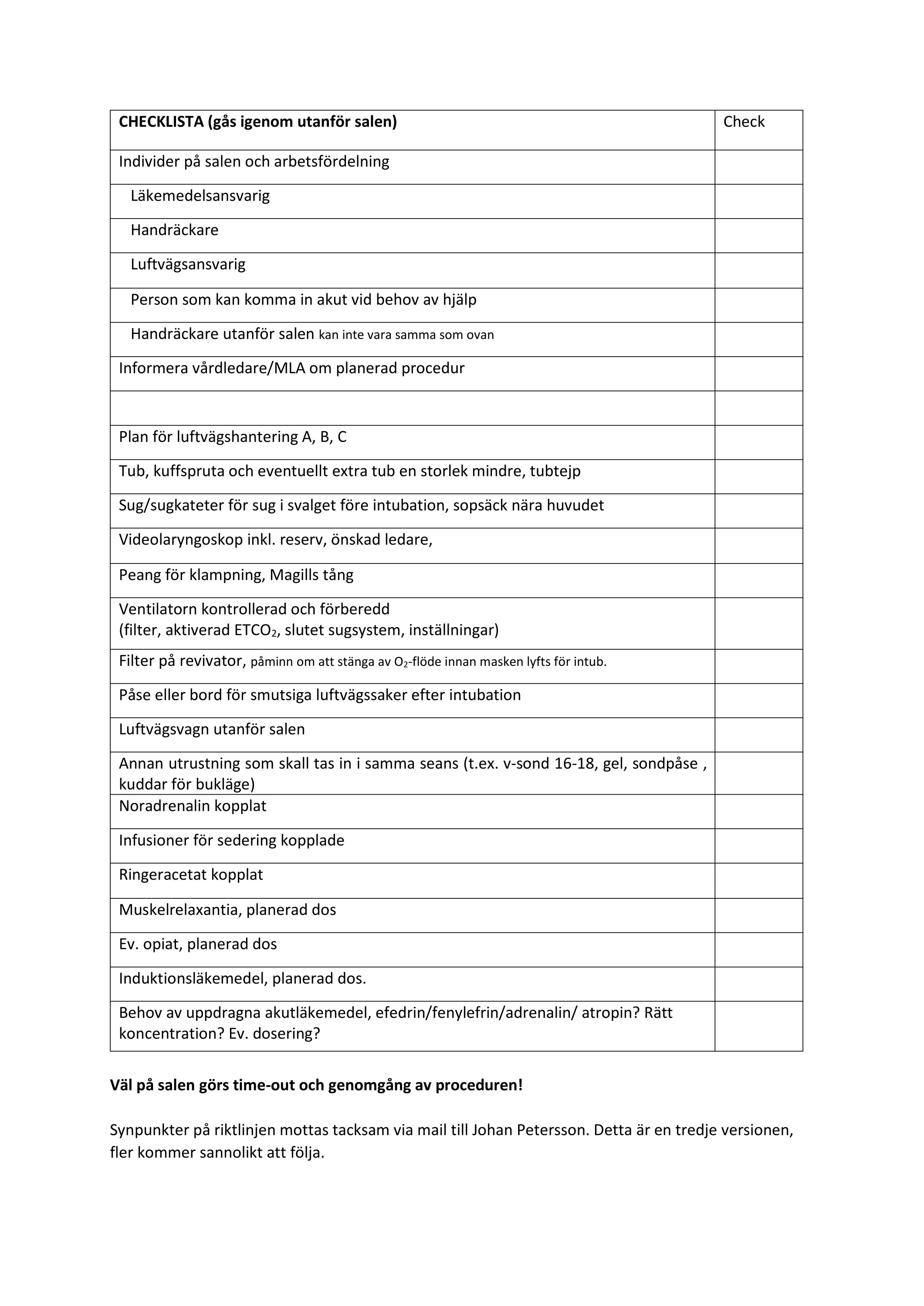 Dessa riktlinjer gäller vid Karolinska Universitetssjukhuset i Solna. Riktlinjerna får såklart användas på andra sjukhus – se dock till att förankra och eventuellt anpassa riktlinjerna för respektive verksamhet.