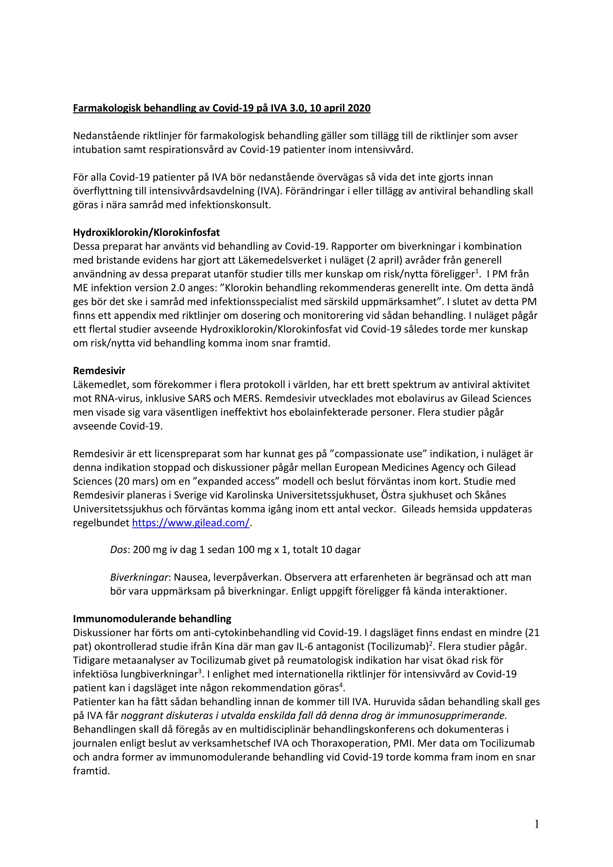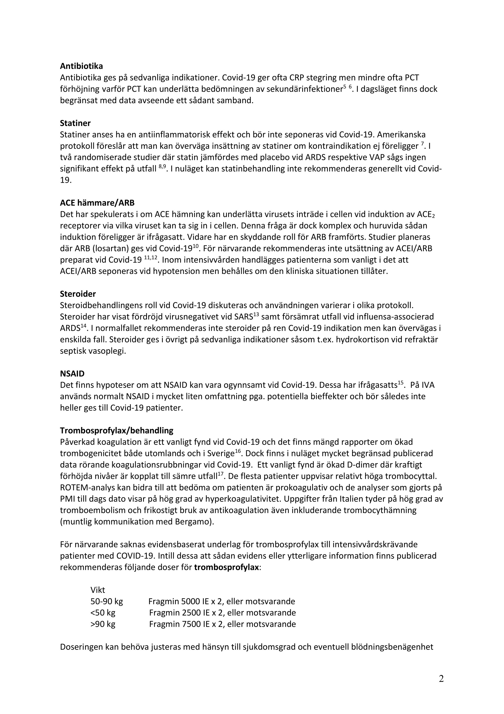 Uppdaterade riktlinjer (version 3), särskilt avseende antikoagulation vid COVID-19: