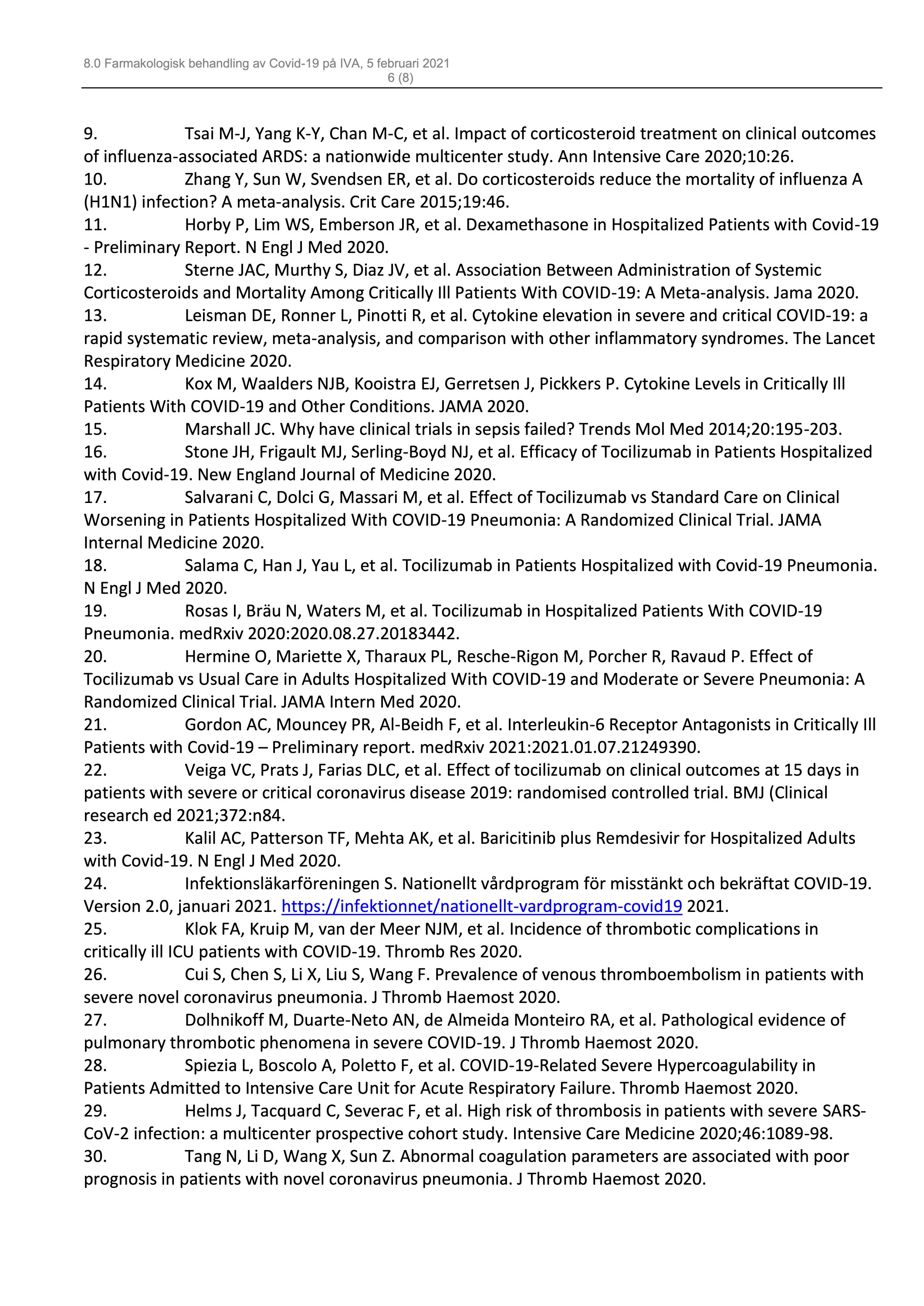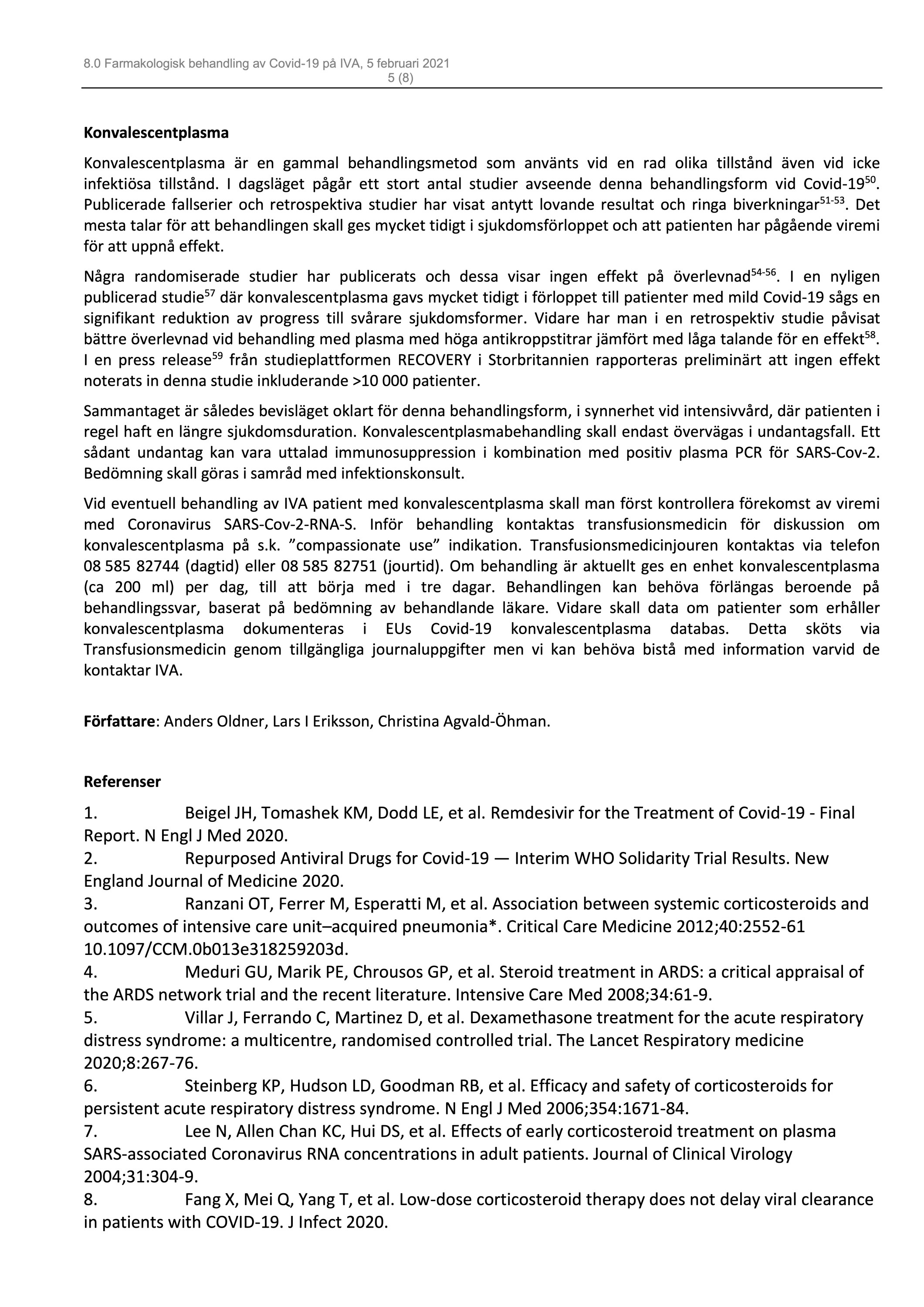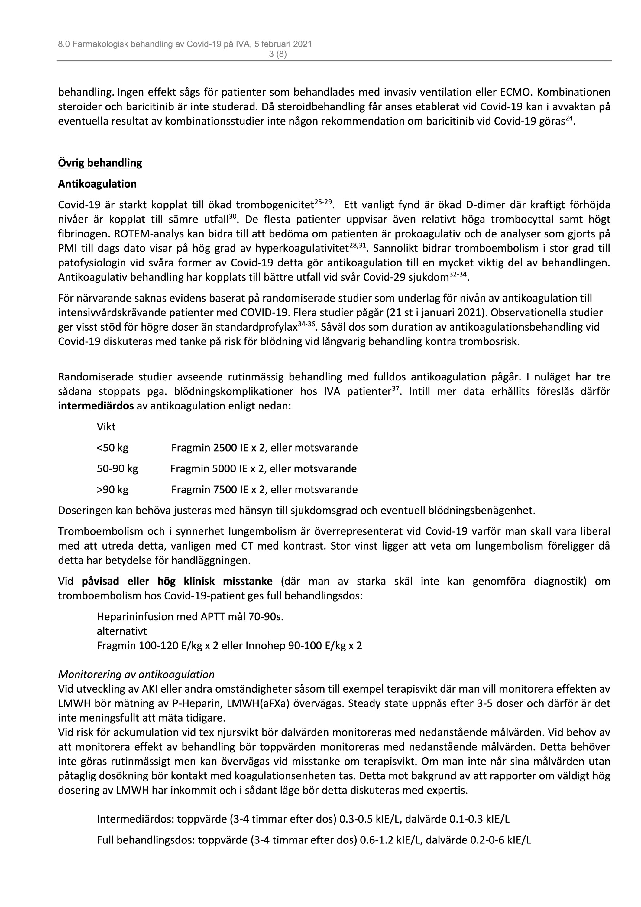 Uppdaterade riktlinjer för farmakologisk beh. av COVID-19 på IVA, från KS