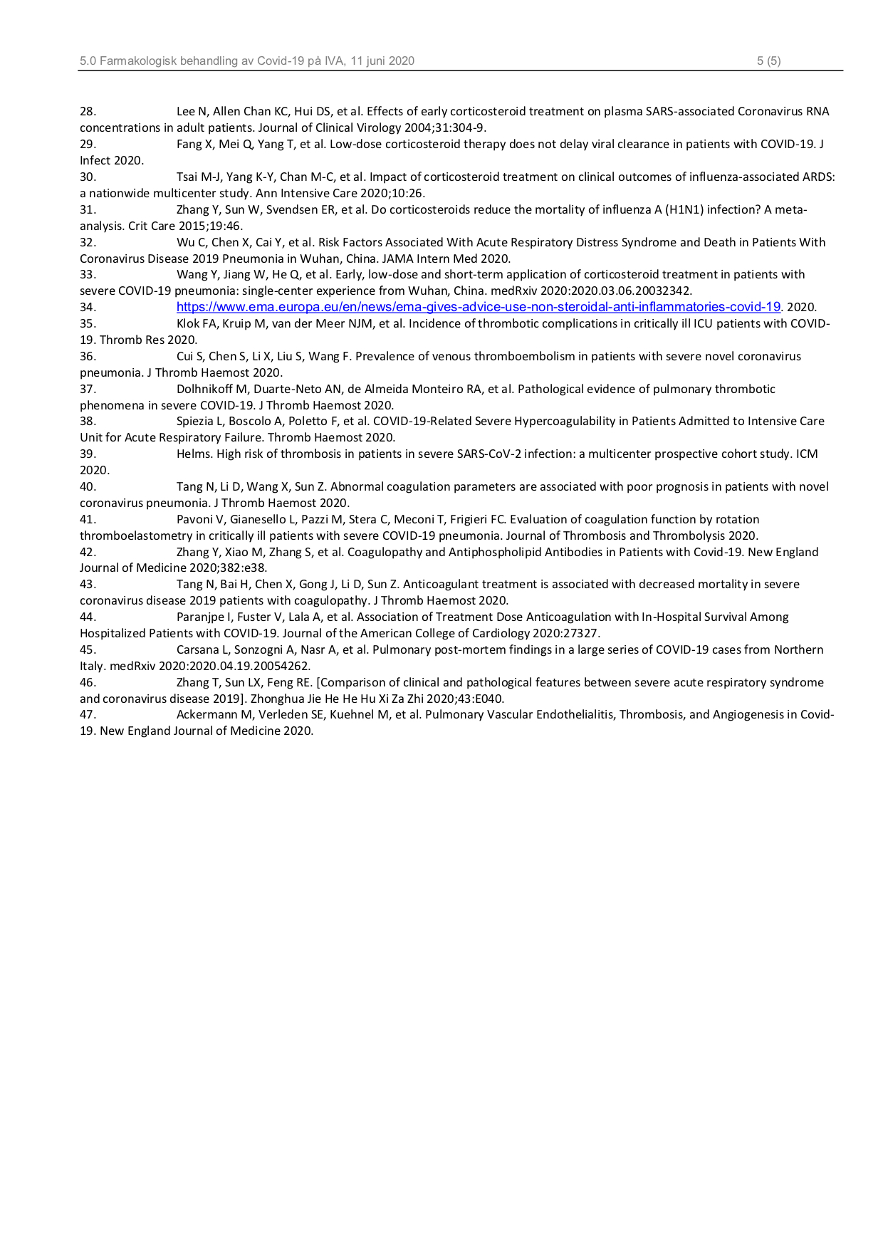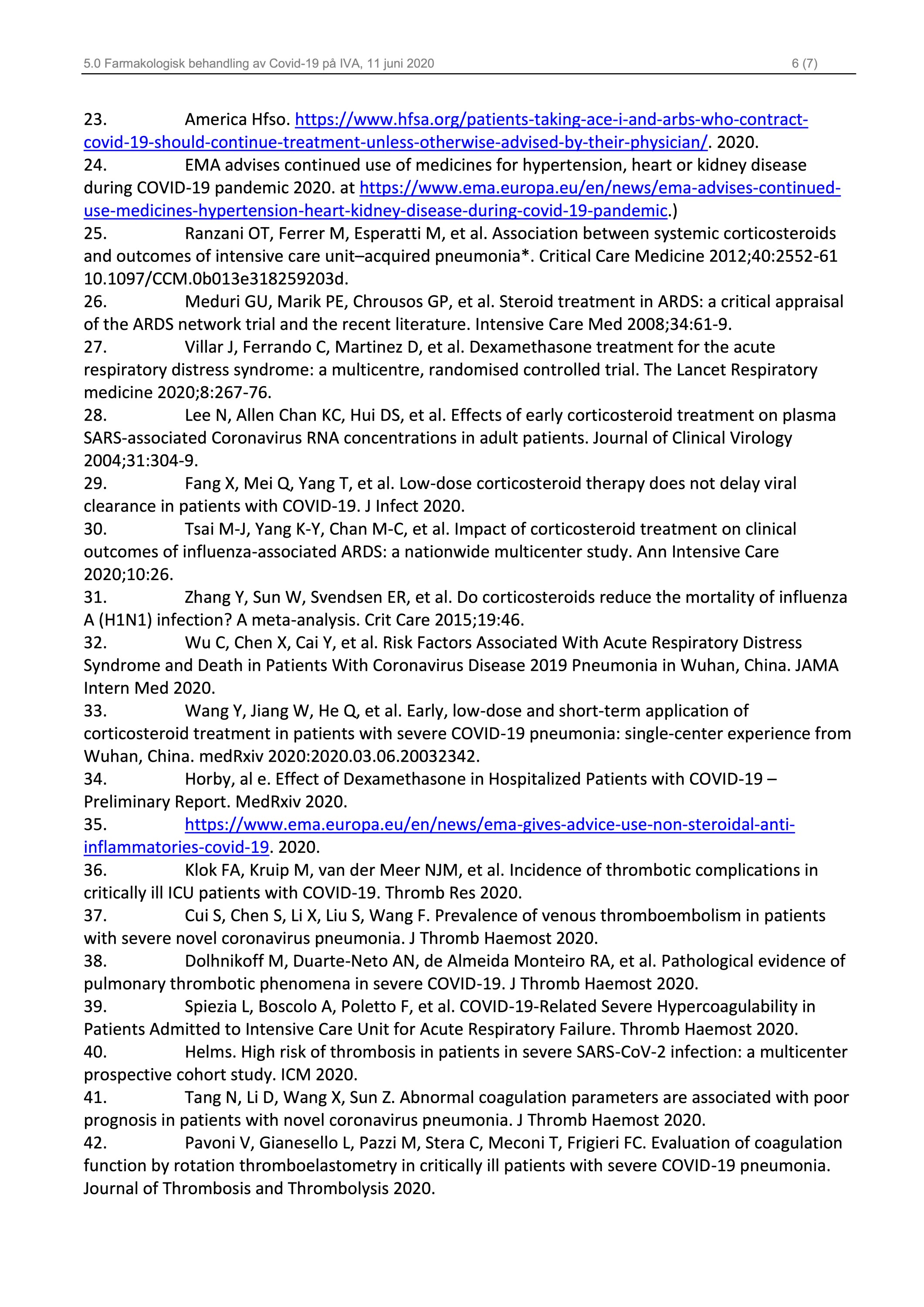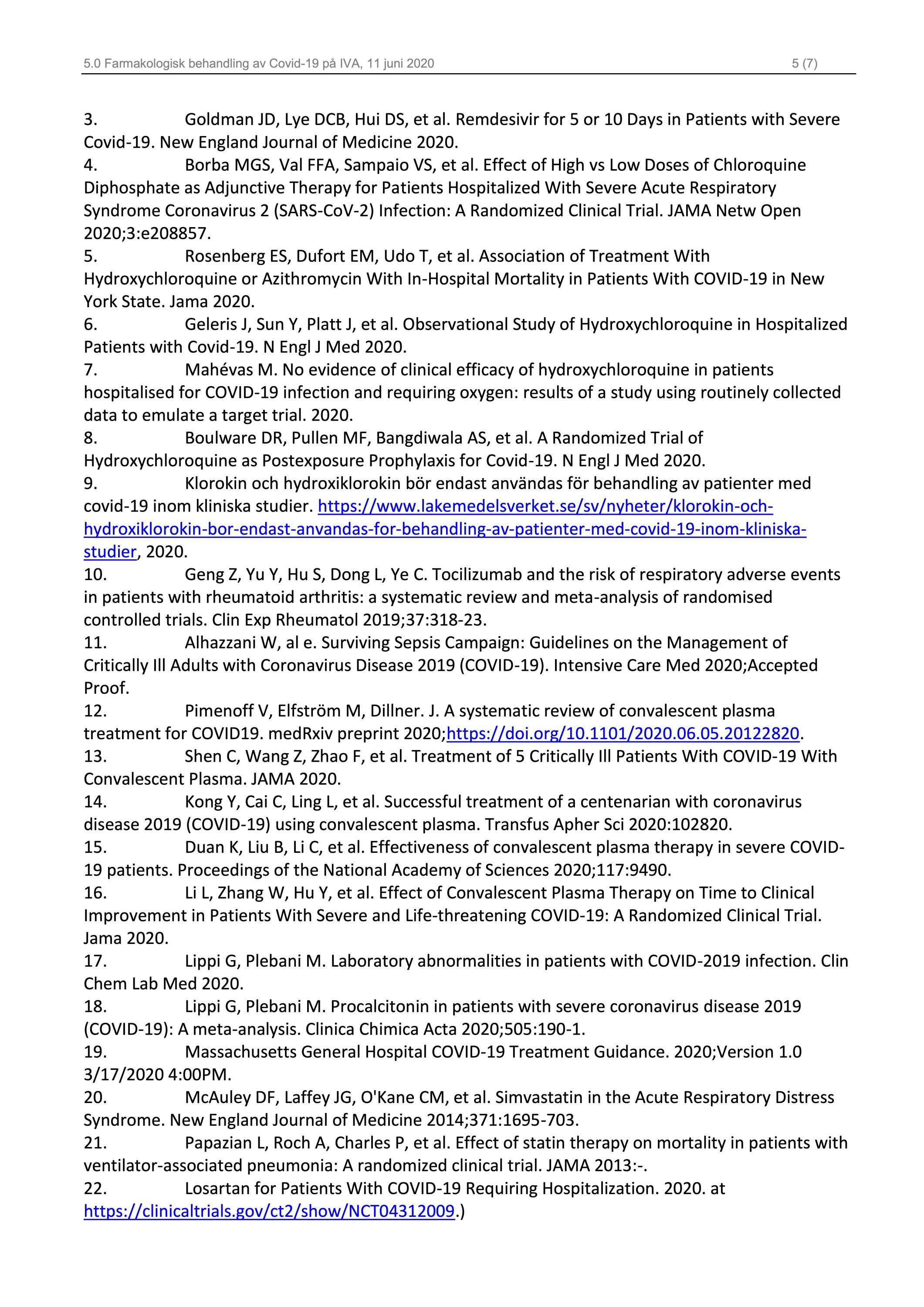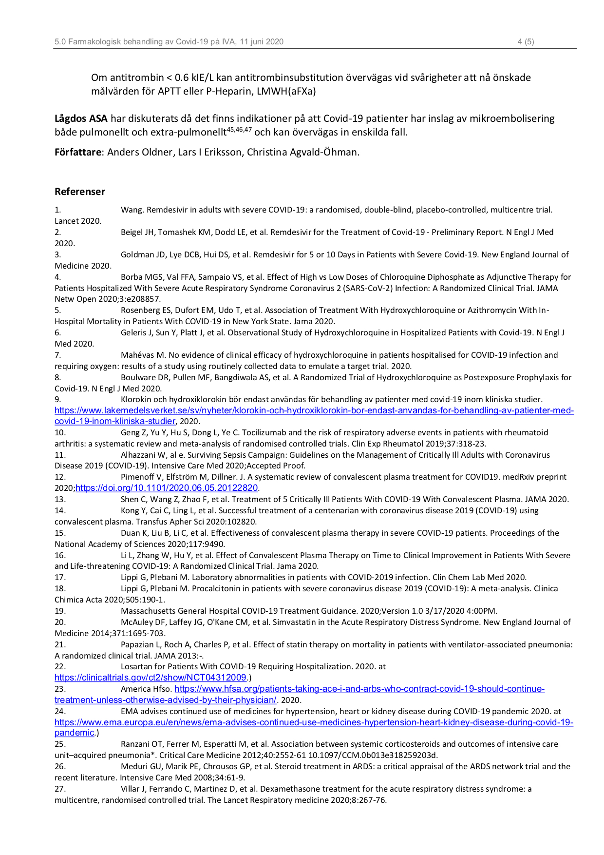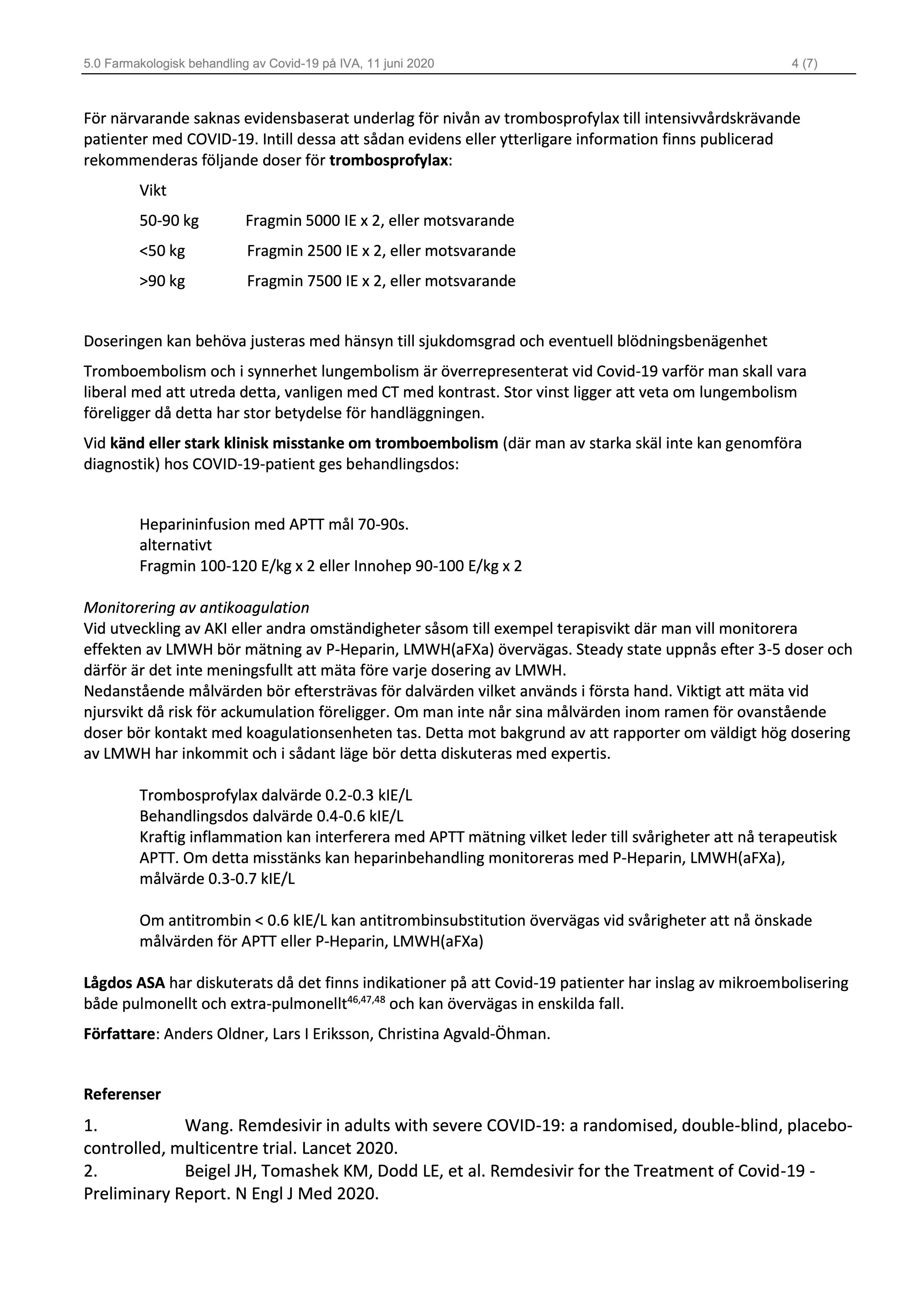 Nedanstående riktlinjer för farmakologisk behandling gäller som tillägg till de övriga riktlinjer som avser intensivvård av COVID-19 patienter. Denna revision är framtagen i samråd med företrädare för ME Infektion.